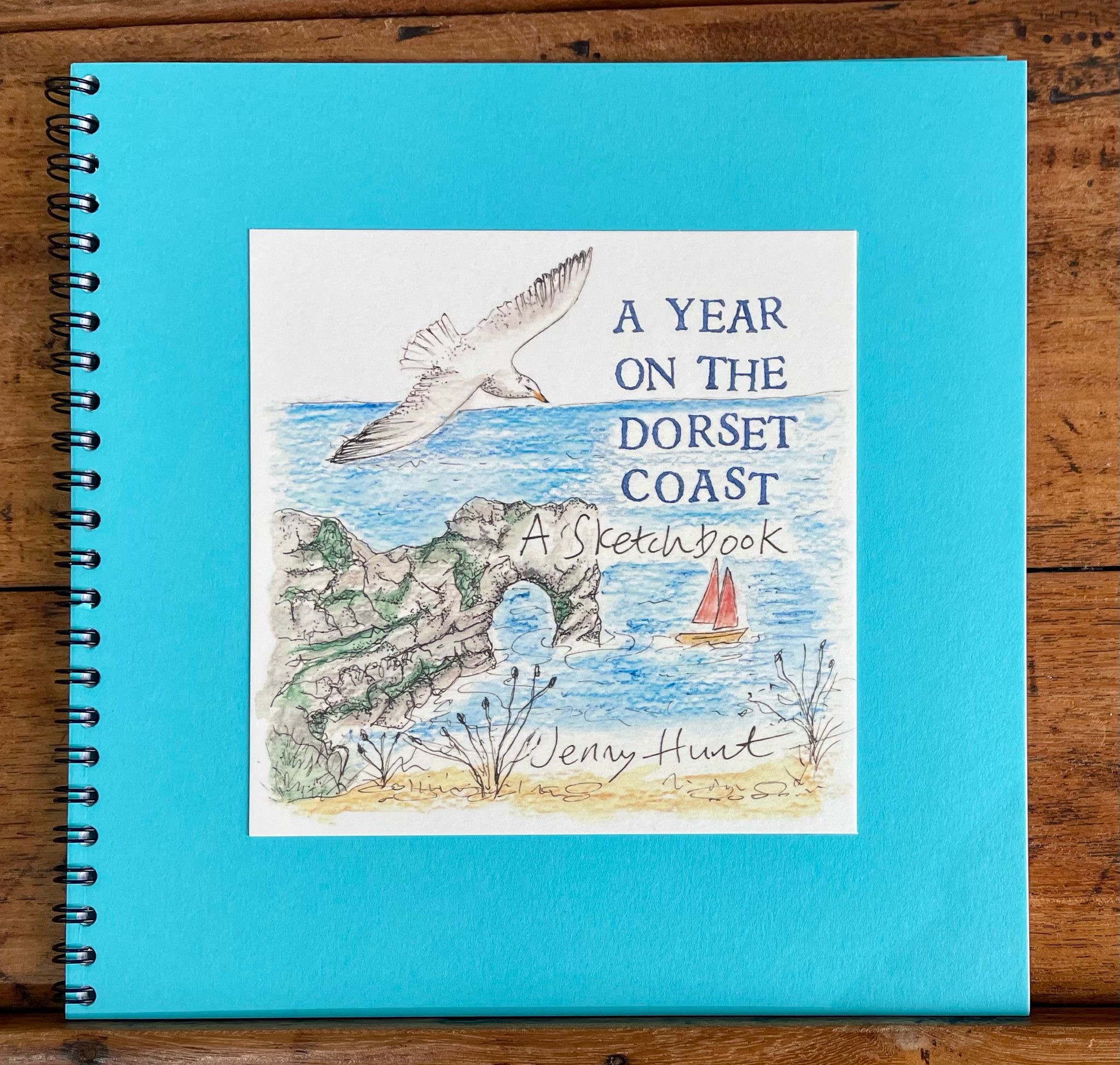 A collection of illustrations and annotations throughout the year inspired by the Dorset Coast, published 2025, by Jenny Hunt.