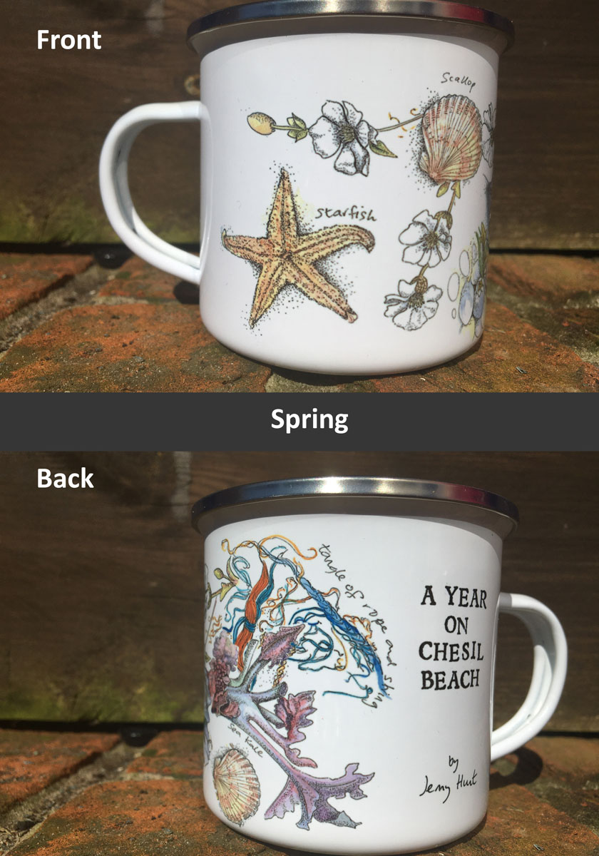 Limited edition enamel mug with printed illustration, artwork by Jenny Hunt.